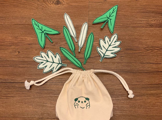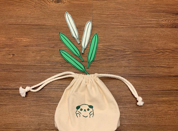 設計葉片及束口袋上刺繡圖案、導入刺繡軟體調整